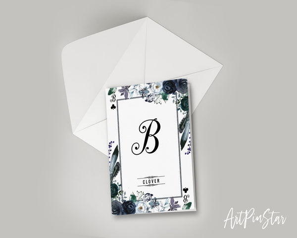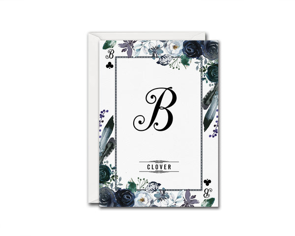 Watercolor Floral Flower Bouquet Initial Letter B Clover Monogram Note Cards
