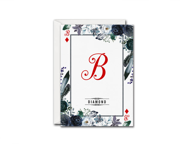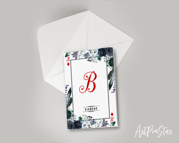 Watercolor Floral Flower Bouquet Initial Letter B Diamond Monogram Note Cards