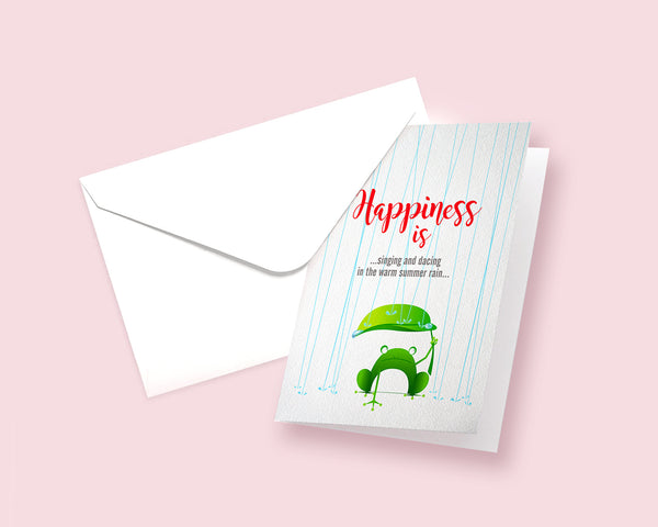 Happiness is singing and dancing in the warm summer rain Frog Animal Greeting Cards