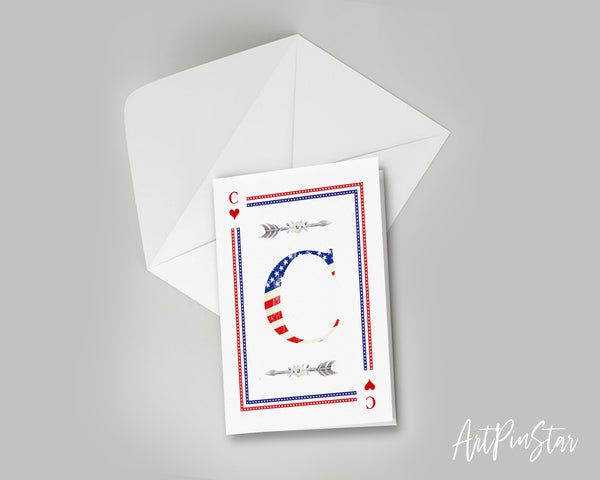 American Flag Letter C Heart Monogram Note Cards