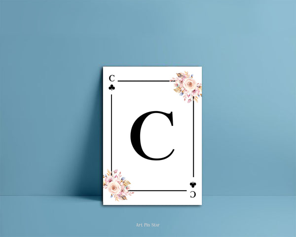 Boho Floral Bouquet Initial Flower Letter C Clover Monogram Note Cards