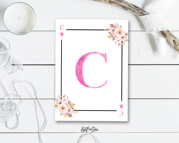 Boho Floral Bouquet Initial Flower Letter C Diamond Monogram Note Cards