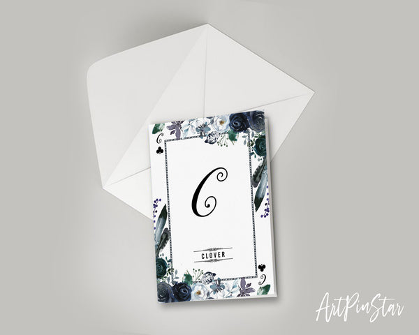 Watercolor Floral Flower Bouquet Initial Letter C Clover Monogram Note Cards
