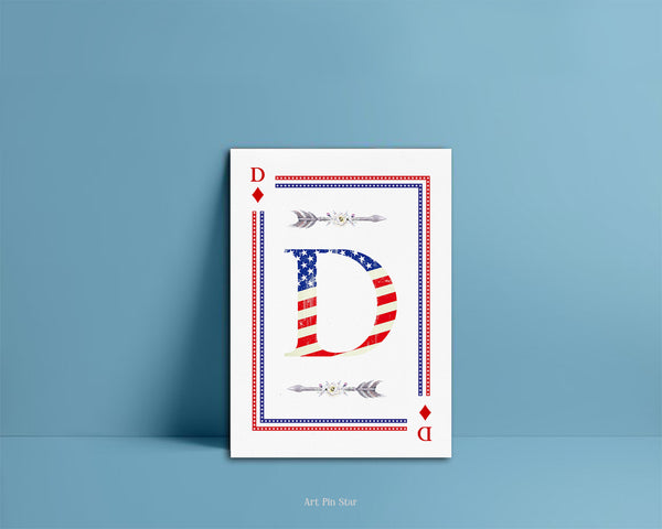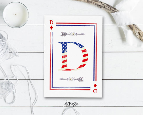 American Flag Letter D Diamond Monogram Note Cards