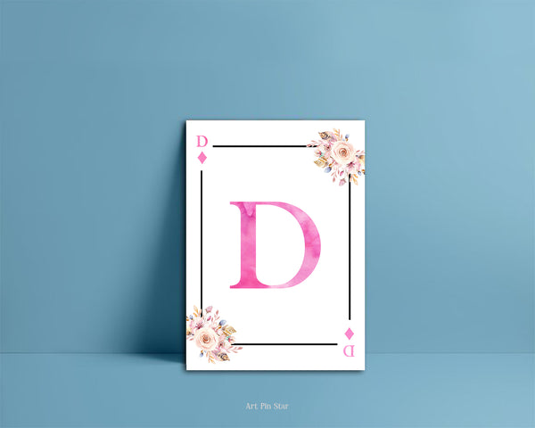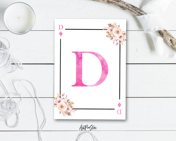 Boho Floral Bouquet Initial Flower Letter D Diamond Monogram Note Cards