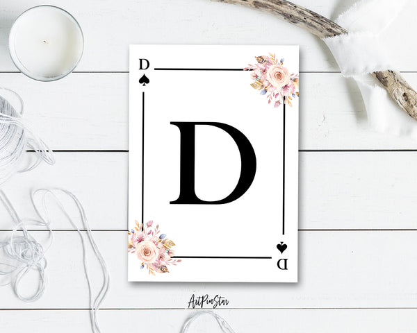 Boho Floral Bouquet Initial Flower Letter D Spade Monogram Note Cards