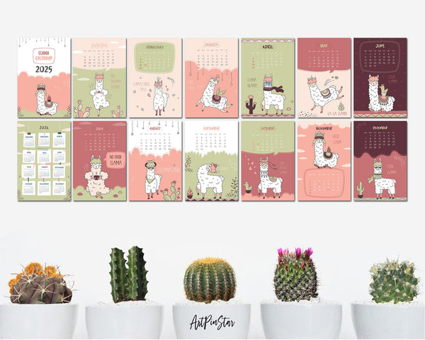 2025 Desk Calendar Alpaca Llama Scandinavian Sheep Animal Wooden Mini Easel Stand Holder