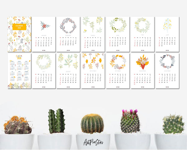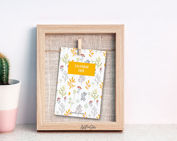 2025 Desk Calendar Botanical Romantic Seasonal Wreaths Wooden Mini Easel Stand Holder