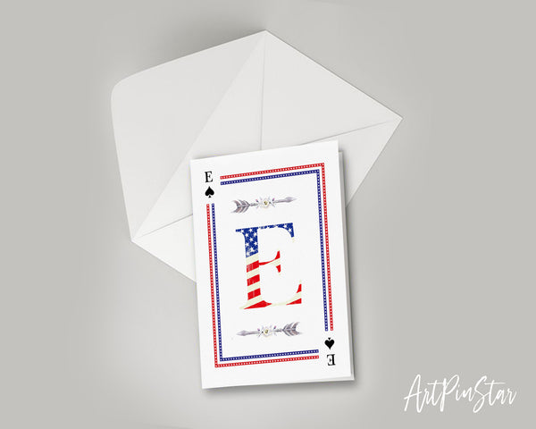 American Flag Letter E Spade Monogram Note Cards
