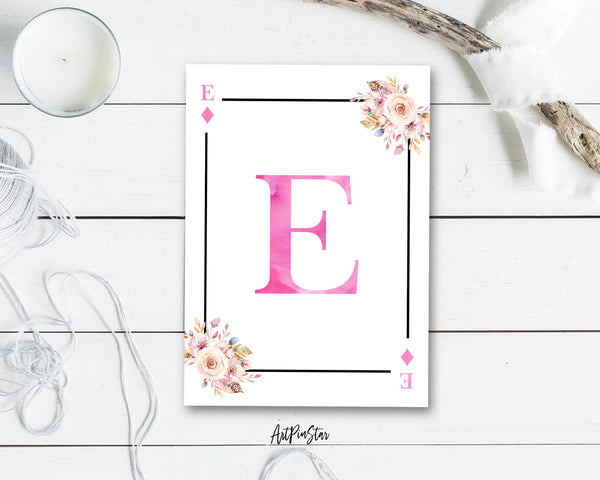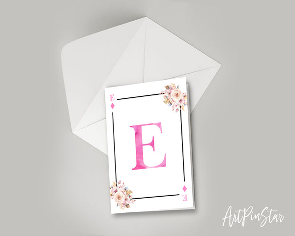 Boho Floral Bouquet Initial Flower Letter E Diamond Monogram Note Cards