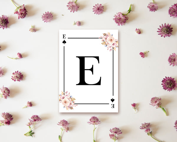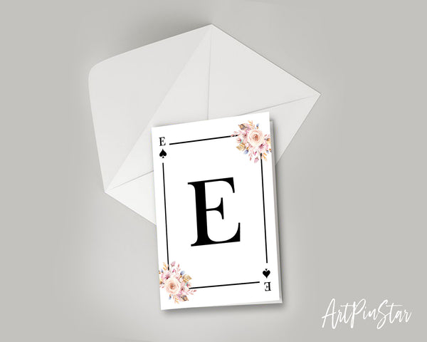 Boho Floral Bouquet Initial Flower Letter E Spade Monogram Note Cards