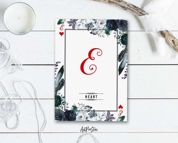 Watercolor Floral Flower Bouquet Initial Letter E Heart Monogram Note Cards