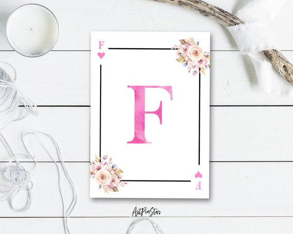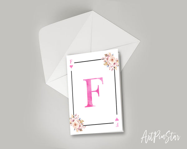 Boho Floral Bouquet Initial Flower Letter F Heart Monogram Note Cards