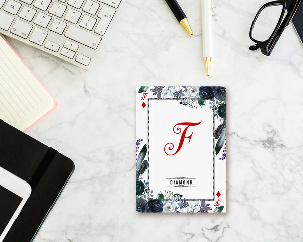 Watercolor Floral Flower Bouquet Initial Letter F Diamond Monogram Note Cards