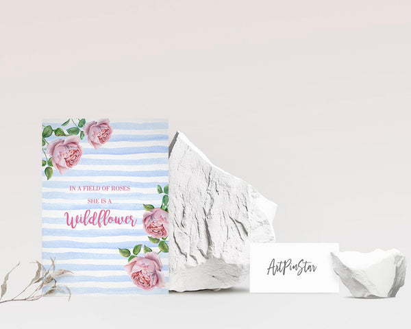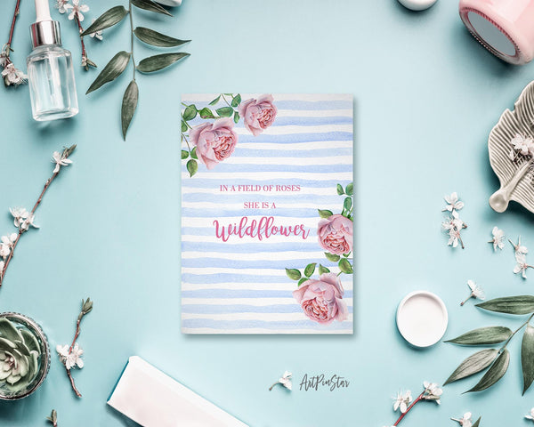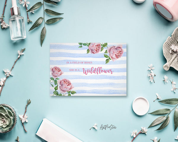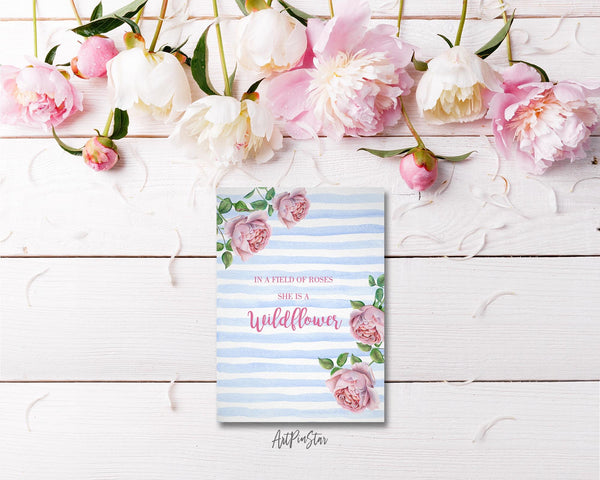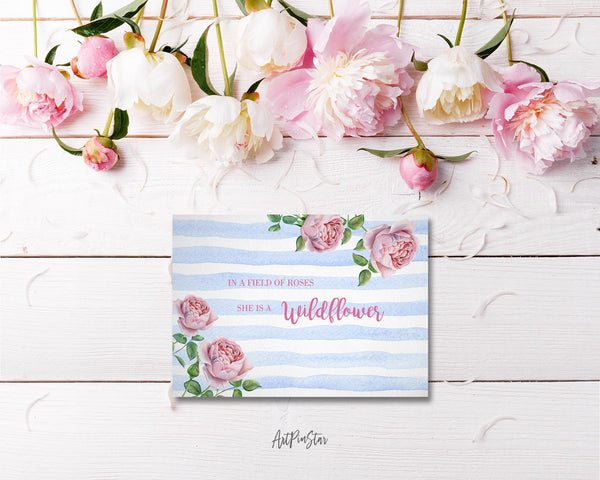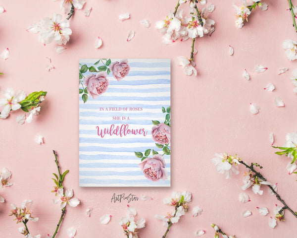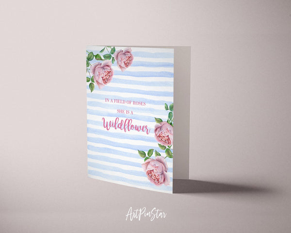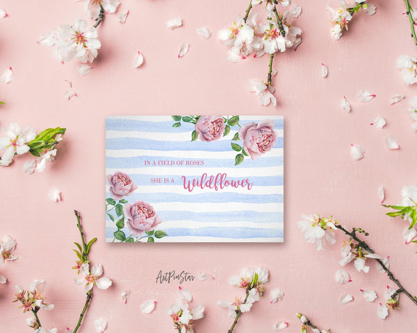 In a field of roses she is a wildflower Flower Quote Customized Gift Cards