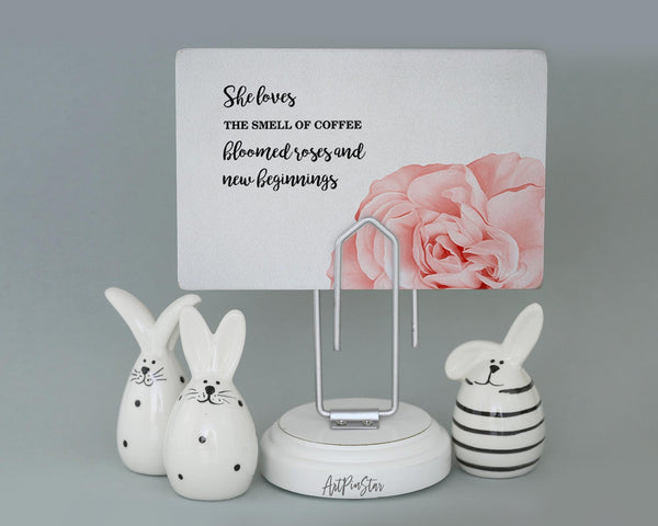 She loves the smell of coffee bloomed roses and new beginnings Flower Personalized Gift Cards - ArtPinStar.com
