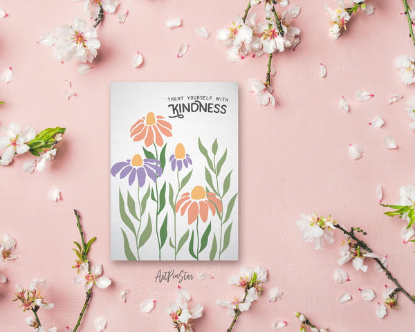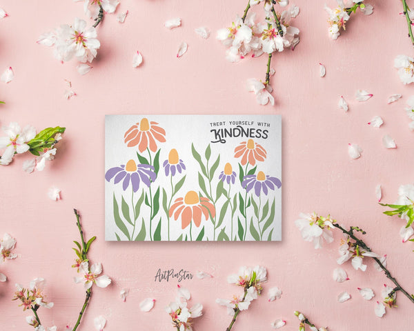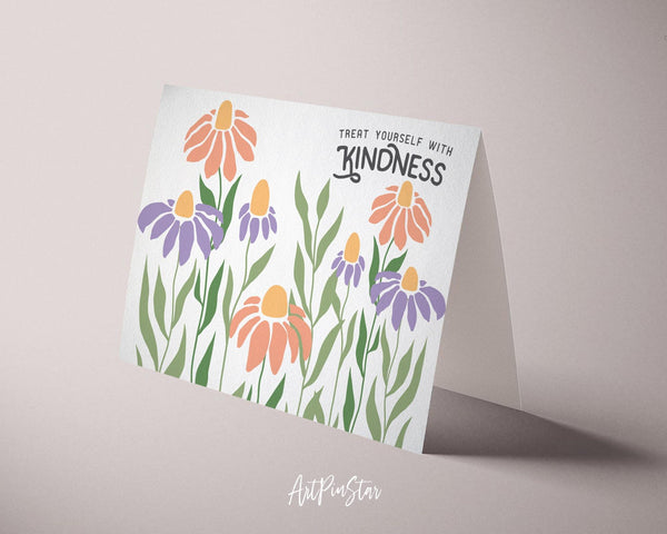 Treat yourself with kindness Flower Quote Customized Gift Cards