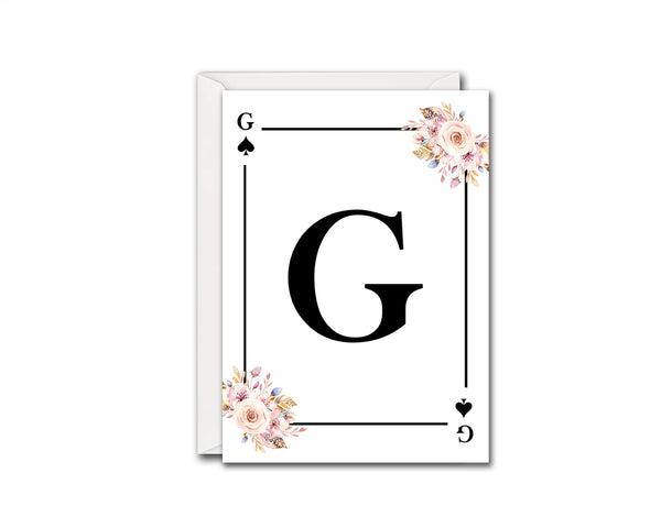 Boho Floral Bouquet Initial Flower Letter G Spade Monogram Note Cards