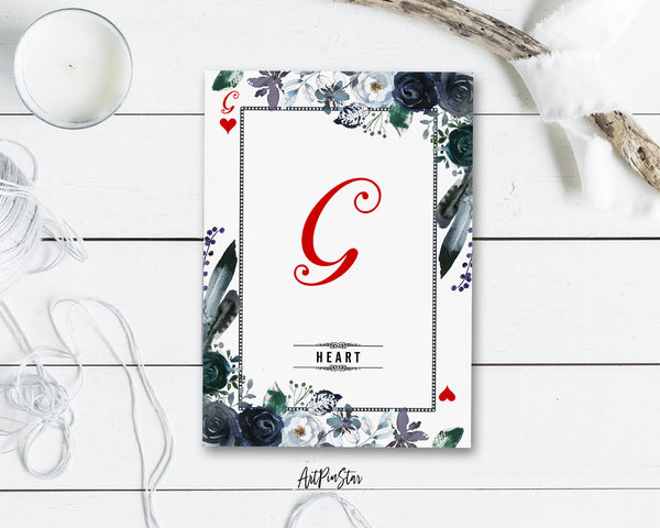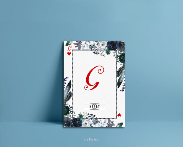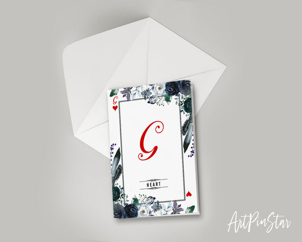 Watercolor Floral Flower Bouquet Initial Letter G Heart Monogram Note Cards