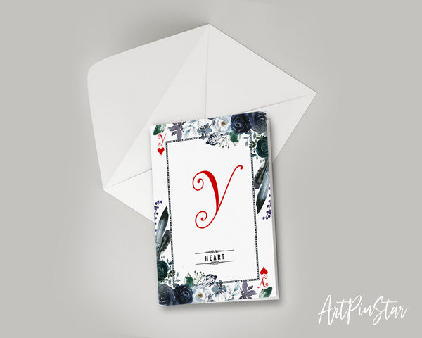 Watercolor Floral Flower Bouquet Initial Letter Y Heart Monogram Note Cards