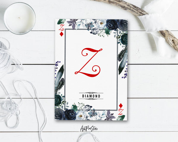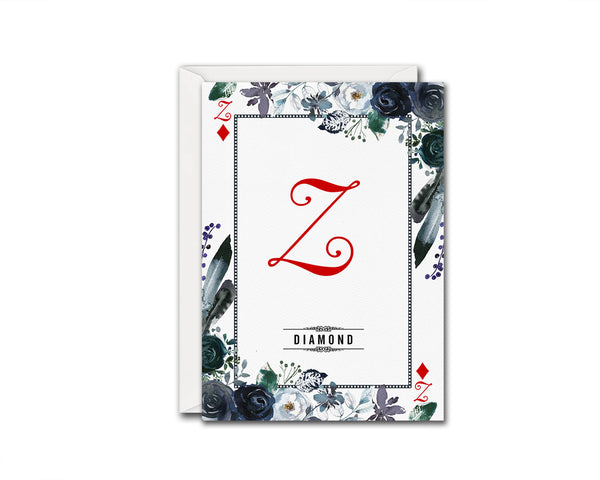 Watercolor Floral Flower Bouquet Initial Letter Z Diamond Monogram Note Cards