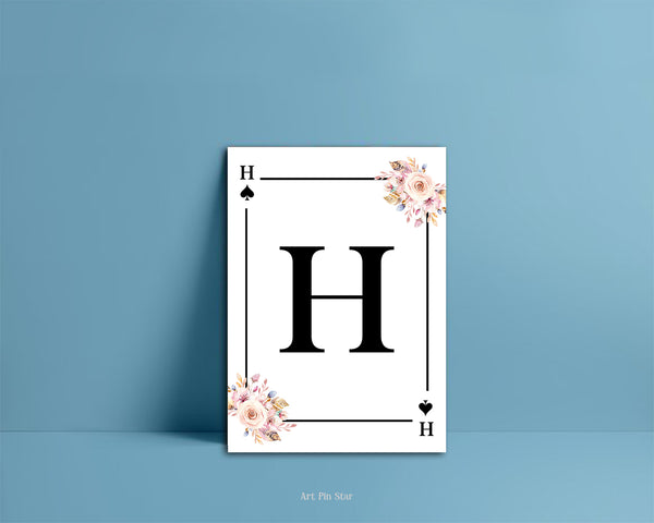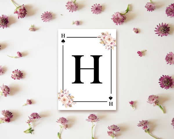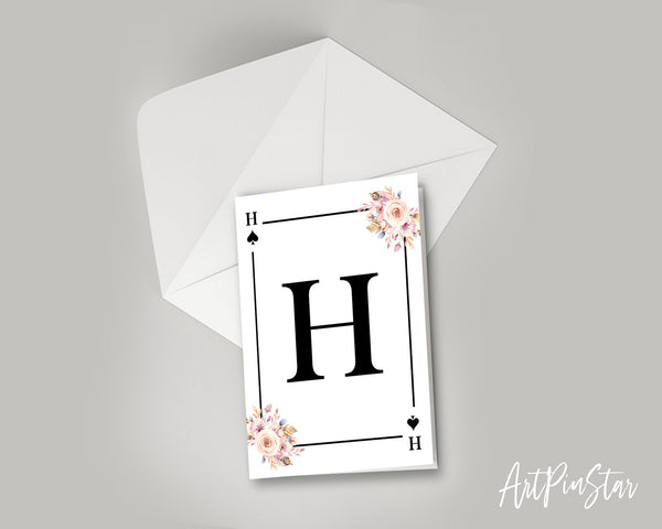 Boho Floral Bouquet Initial Flower Letter H Spade Monogram Note Cards