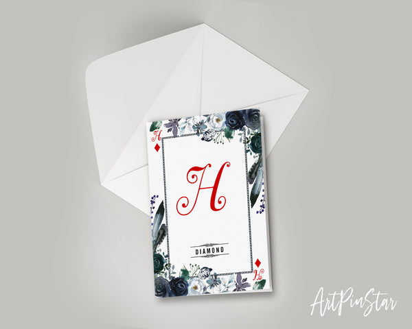 Watercolor Floral Flower Bouquet Initial Letter H Diamond Monogram Note Cards