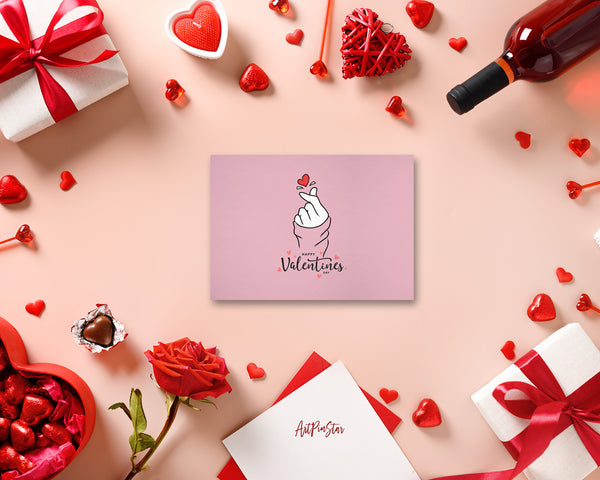 Valentine's Day Finger Heart Love Sign Personalized Greeting Cards - ArtPinStar.com