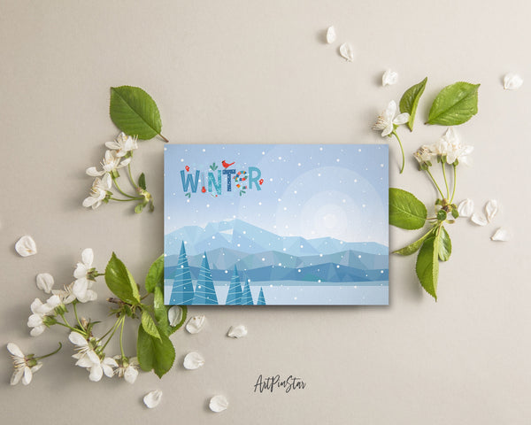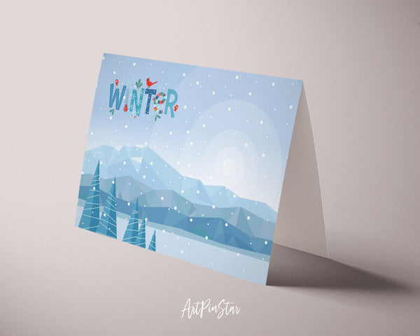 Abstract Mountain Landscapes of Geometric Winter Customizable Season Greeting Cards