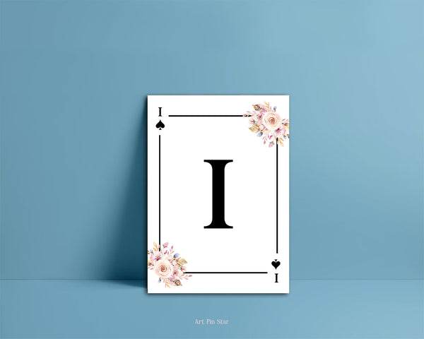 Boho Floral Bouquet Initial Flower Letter I Spade Monogram Note Cards