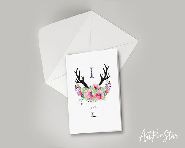Initial Boho Floral Flower Personalized Letter I is for Name Monogram Note Cards