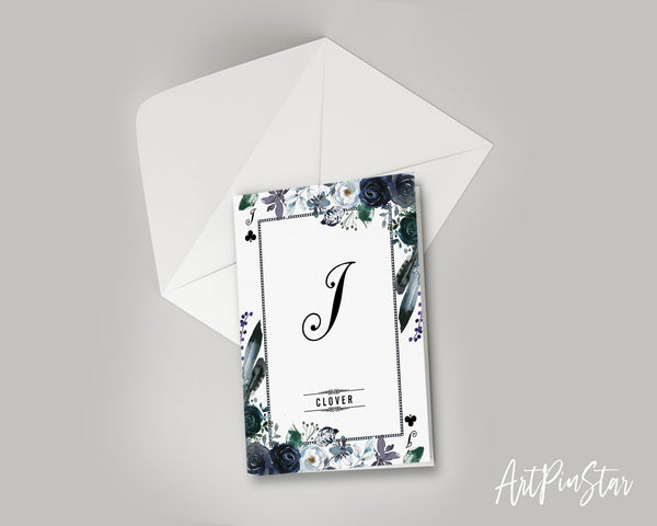 Watercolor Floral Flower Bouquet Initial Letter I Clover Monogram Note Cards