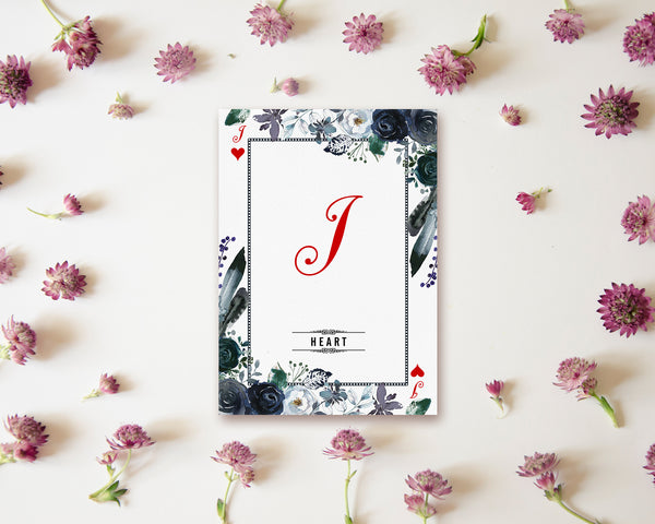 Watercolor Floral Flower Bouquet Initial Letter I Heart Monogram Note Cards