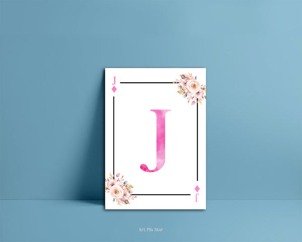Boho Floral Bouquet Initial Flower Letter J Diamond Monogram Note Cards