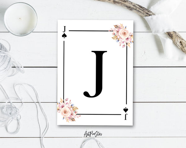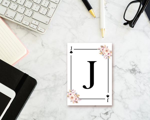 Boho Floral Bouquet Initial Flower Letter J Spade Monogram Note Cards