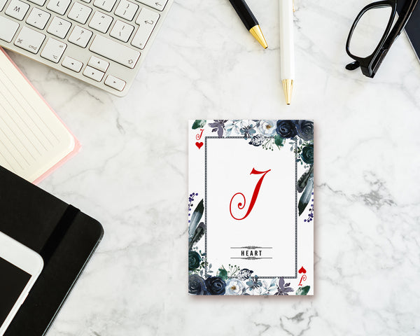Watercolor Floral Flower Bouquet Initial Letter J Heart Monogram Note Cards