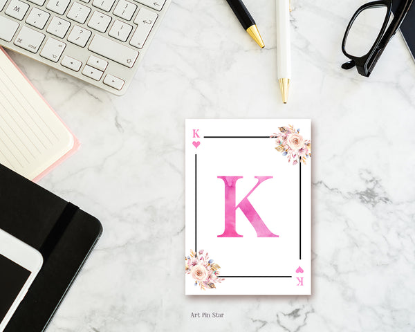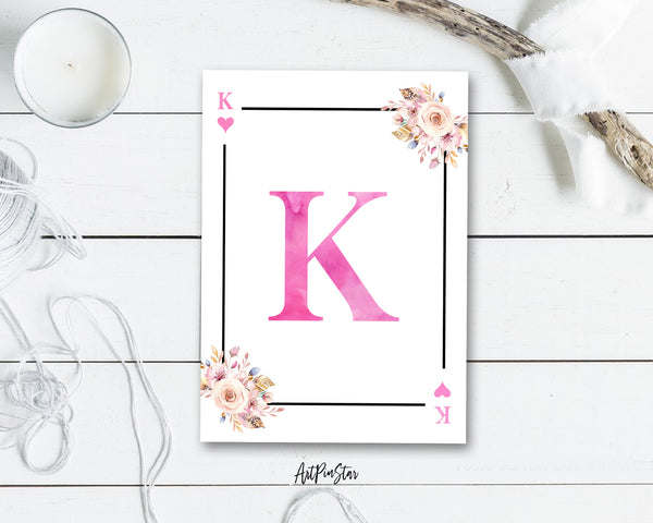 Boho Floral Bouquet Initial Flower Letter K Heart Monogram Note Cards