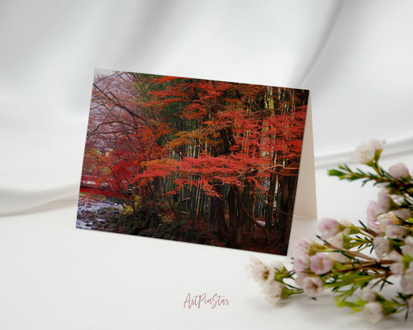 Japanese Scenery Autumn Mountain Park, Japan Landscape Custom Greeting Cards