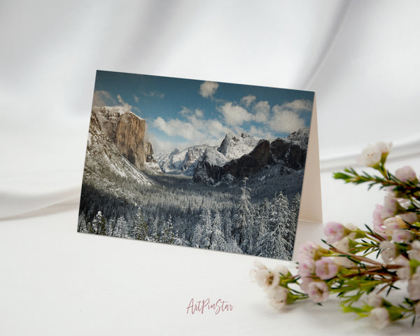 Yosemite Valley National Park in Winter, California Landscape Custom Greeting Cards