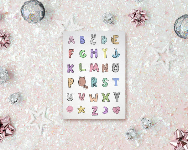 Alphabet Letter Initial Chart A-Z Animal Monogram Note Cards