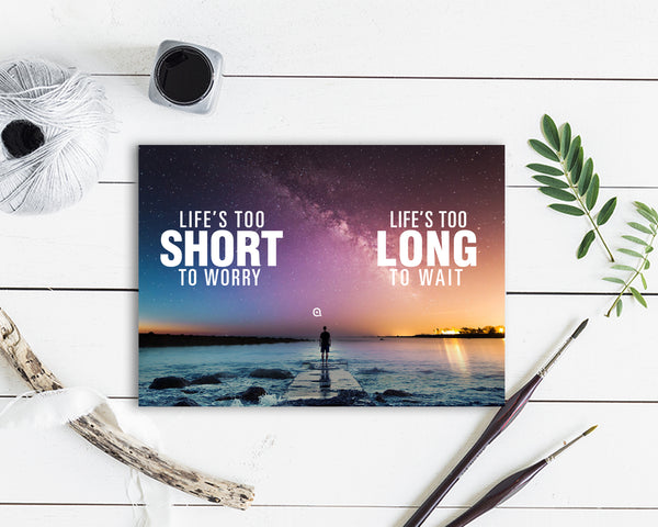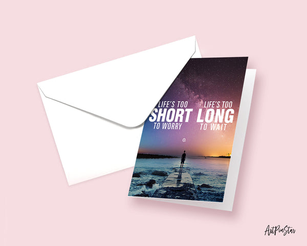Life is too short to worry Life is too long to wait Inspirational Quote Customized Greeting Cards