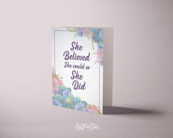 She believed she could so she did RS Grey Inspirational Quote Customized Greeting Cards