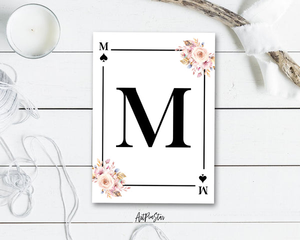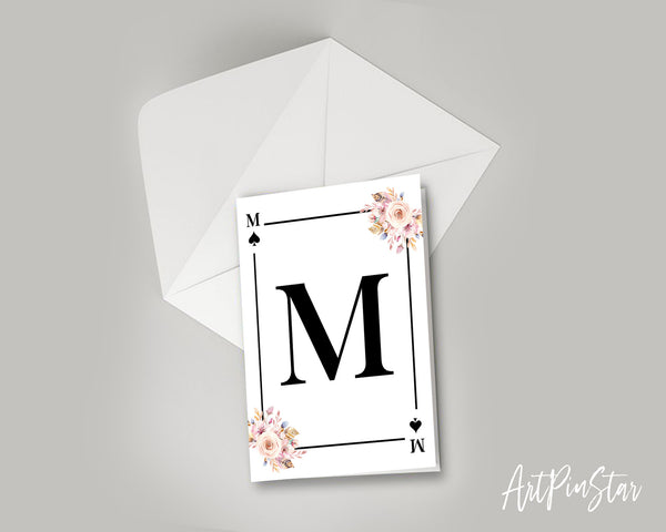 Boho Floral Bouquet Initial Flower Letter M Spade Monogram Note Cards