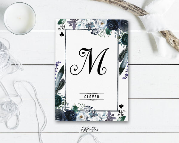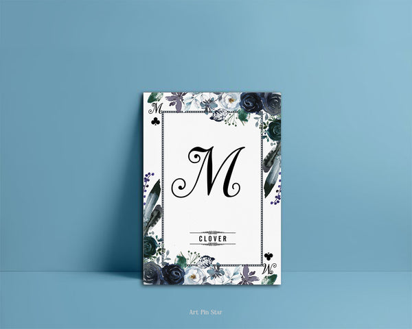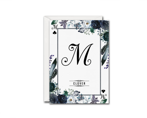 Watercolor Floral Flower Bouquet Initial Letter M Clover Monogram Note Cards