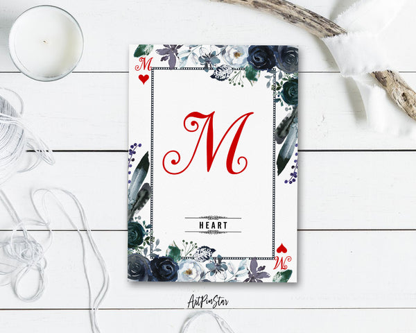 Watercolor Floral Flower Bouquet Initial Letter M Heart Monogram Note Cards