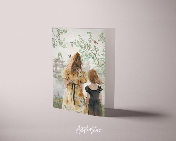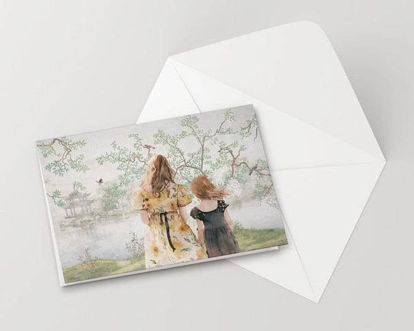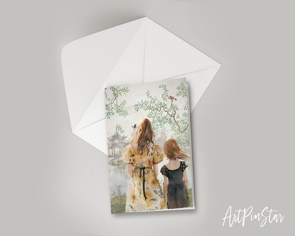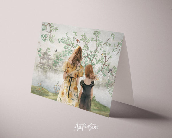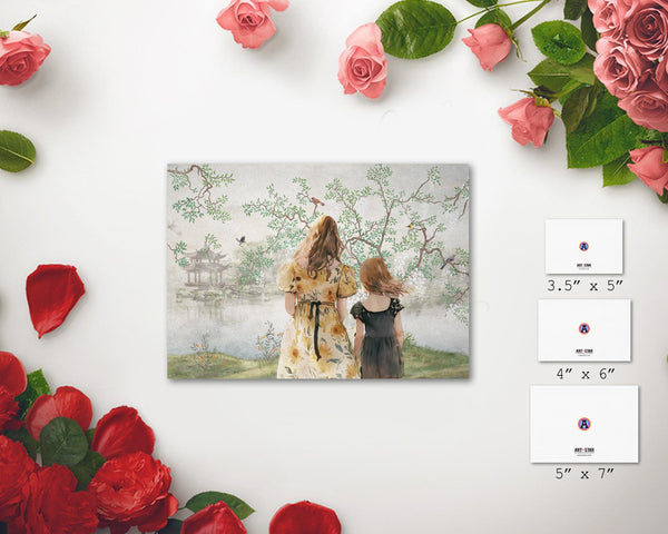 Mom and Child with Tree by the Lake Mother's Day Customizable Card - ArtPinStar.com
