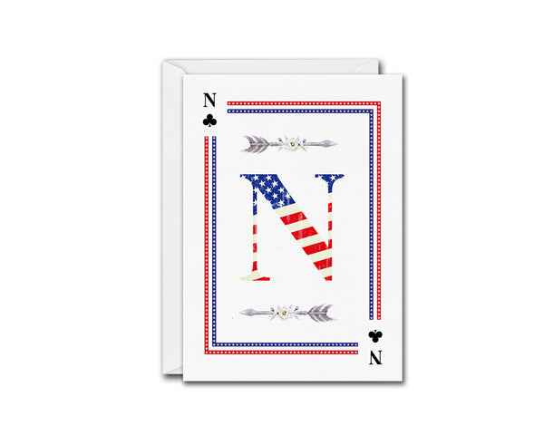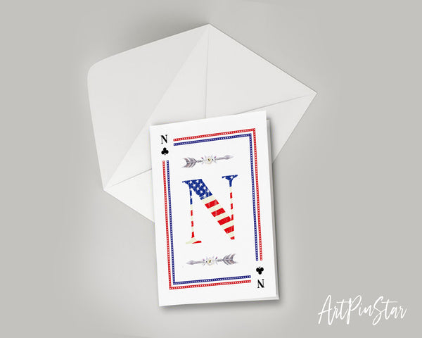 American Flag Letter N Clover Monogram Note Cards