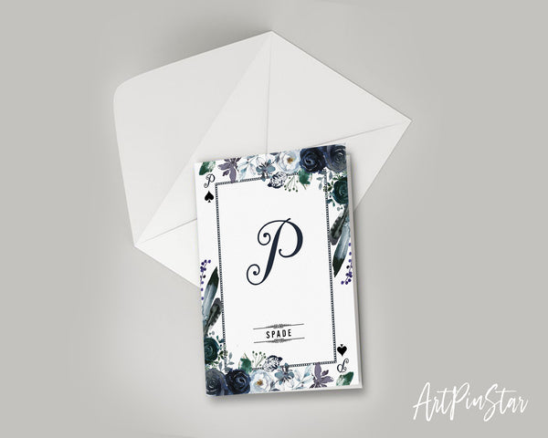 Watercolor Floral Flower Bouquet Initial Letter P Spade Monogram Note Cards
