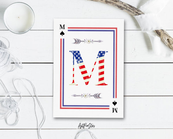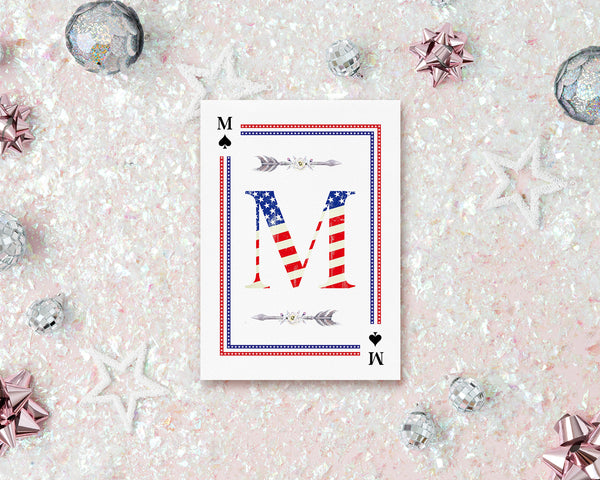 American Flag Letter M Spade Monogram Note Cards