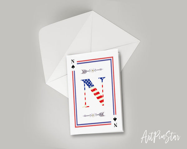 American Flag Spade Letter Personalized Monogram Note Cards - ArtPinStar.com